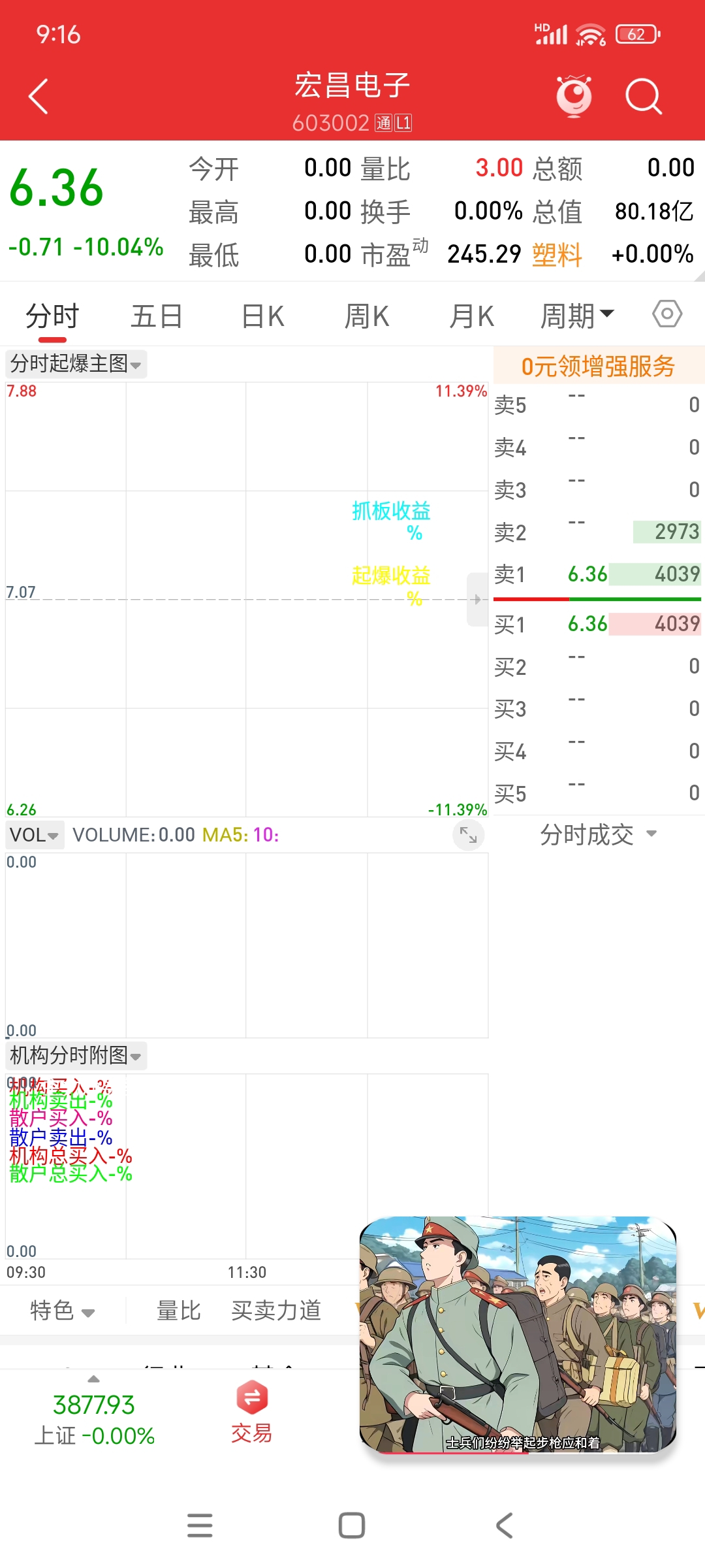 $宏昌电子(SH603002)$ 这个庄家真的很狗血,有本事你拉一下涨停板,别在这里天天用集合竞价跌停板吓唬散户。