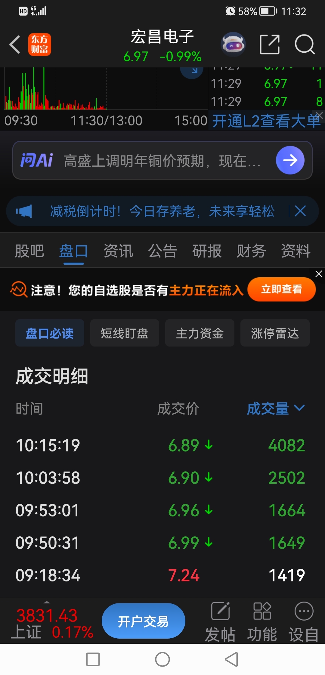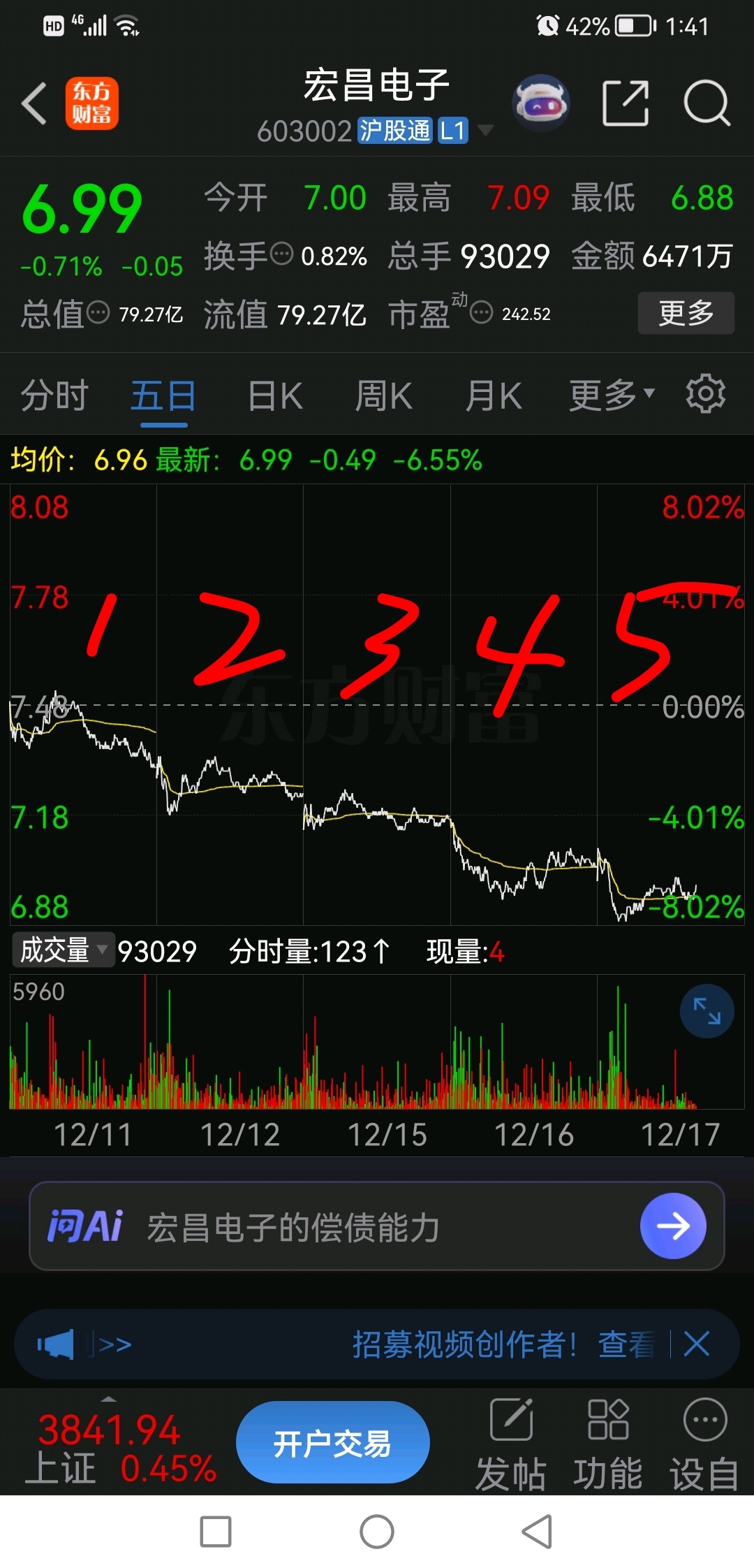 $宏昌电子(SH603002)$ 今天股价只要是低于7块钱,我果断满仓进城吃庄家低价位的筹码。