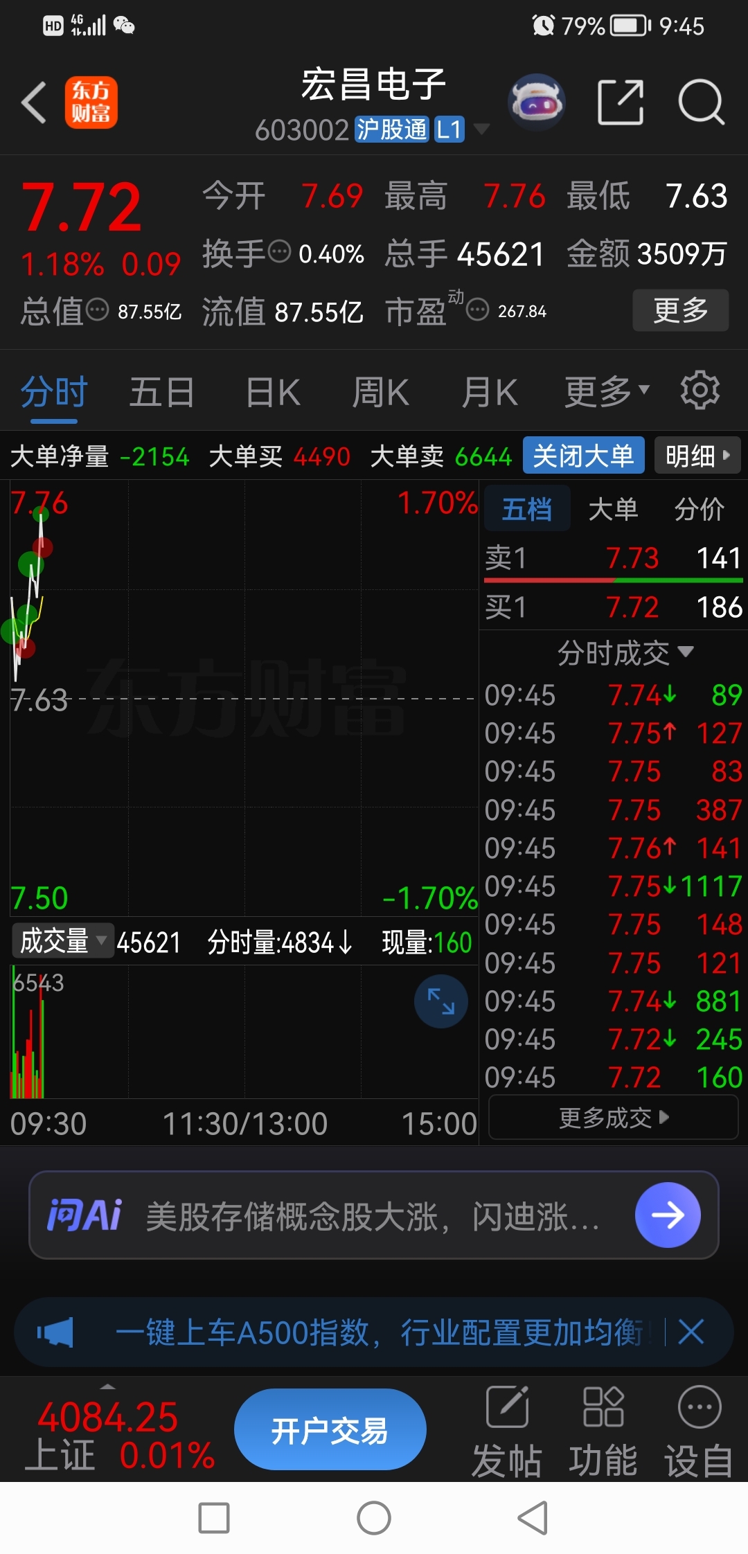 $宏昌电子(SH603002)$ 今天估计要冲高回落概率大,昨天减半仓,现在全部清理干净了。留下来的发大财啊!