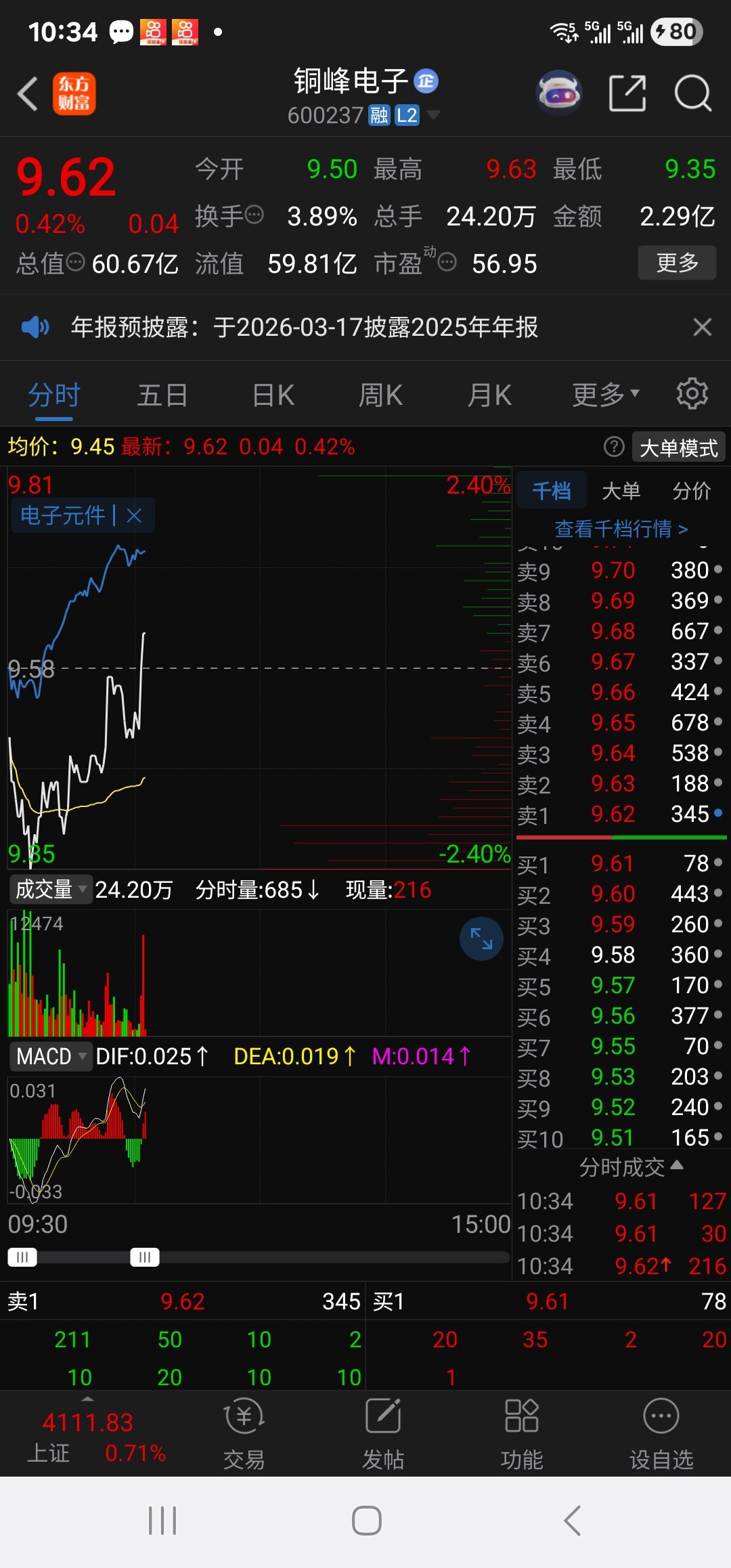//@David雪兔 :下午铜峰电子一波小幅拉升,已经在为突破10元蓄势了,反观宏昌还在不死不活地跌着。吧里总有人拿宏昌的gbf来说事,且不说这个东东要真正投产还得一年以后,另外这玩意当下真有价值的话宏昌股价早就突破10元了。记住了,一切有价值的概念,一定会在走势上,在K线图等技术层面反映出来,小散们千万不要意y,刻舟求剑,刻意困住自己的思维
