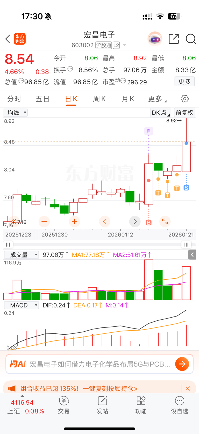 $宏昌电子(SH603002)$ 对不起,不能格局,先减仓,明天尾盘来接着盘你。