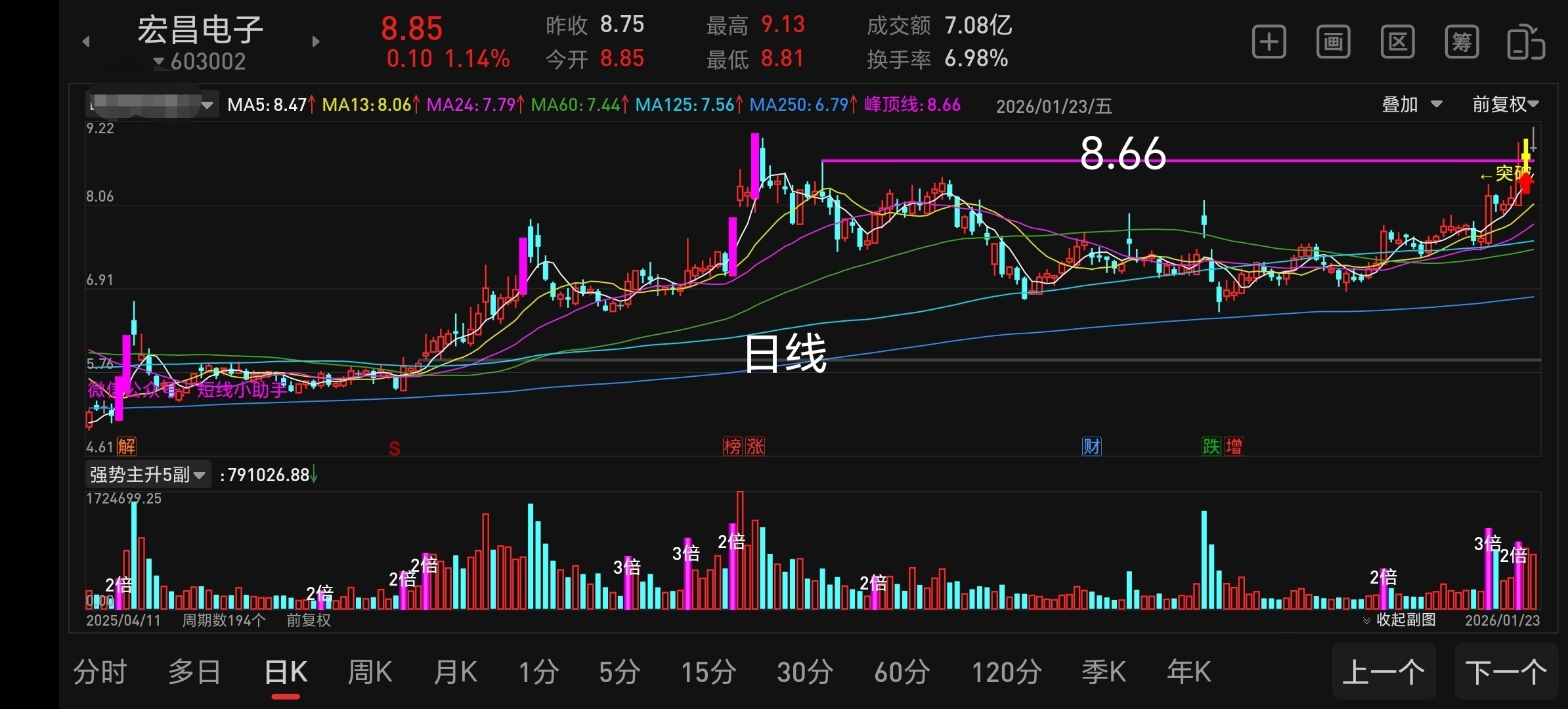 $宏昌电子(SH603002)$ 再论宏昌,大突破近在咫尺,大牛呼之欲出,会看周线量能的就看到宏昌的尽头,超级大主力注定不会让我失望,一鸣从此始,相望青云端。只做预判,不做马后炮记录个人投资历程,不构成操作建议!