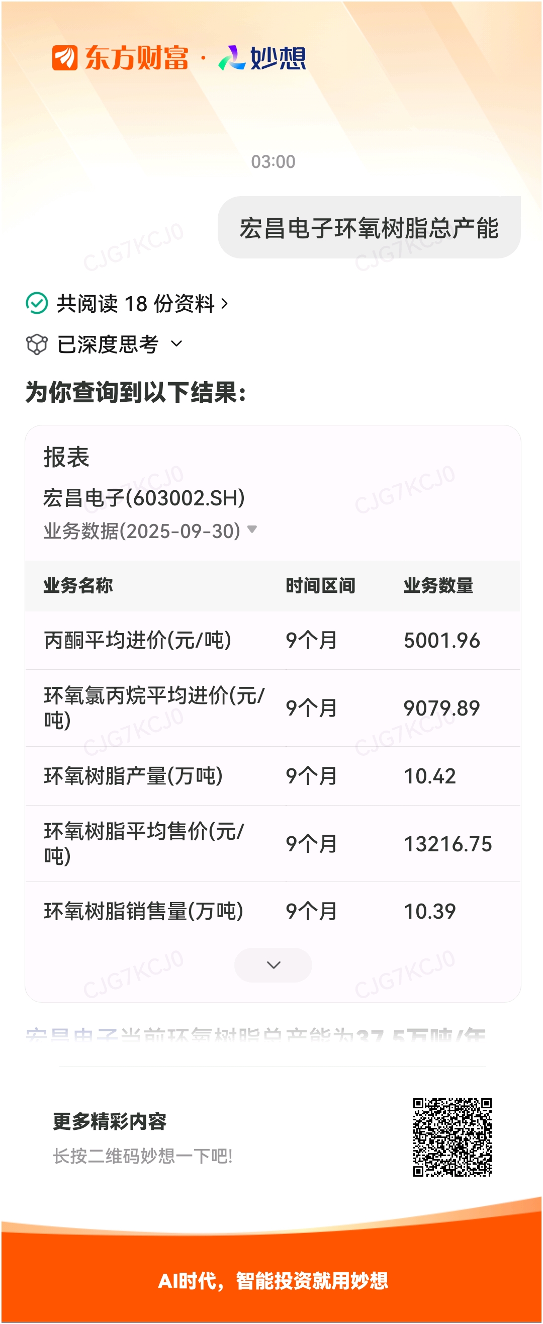 #@妙想,你怎么看?# 妙想一下:宏昌电子环氧树脂总产能已到37.5万吨,目前价格1.4万元,中高端更贵,由此推算收入53亿,覆铜板收入计划100亿。$宏昌电子(SH603002)$ $金安国纪(SZ002636)$