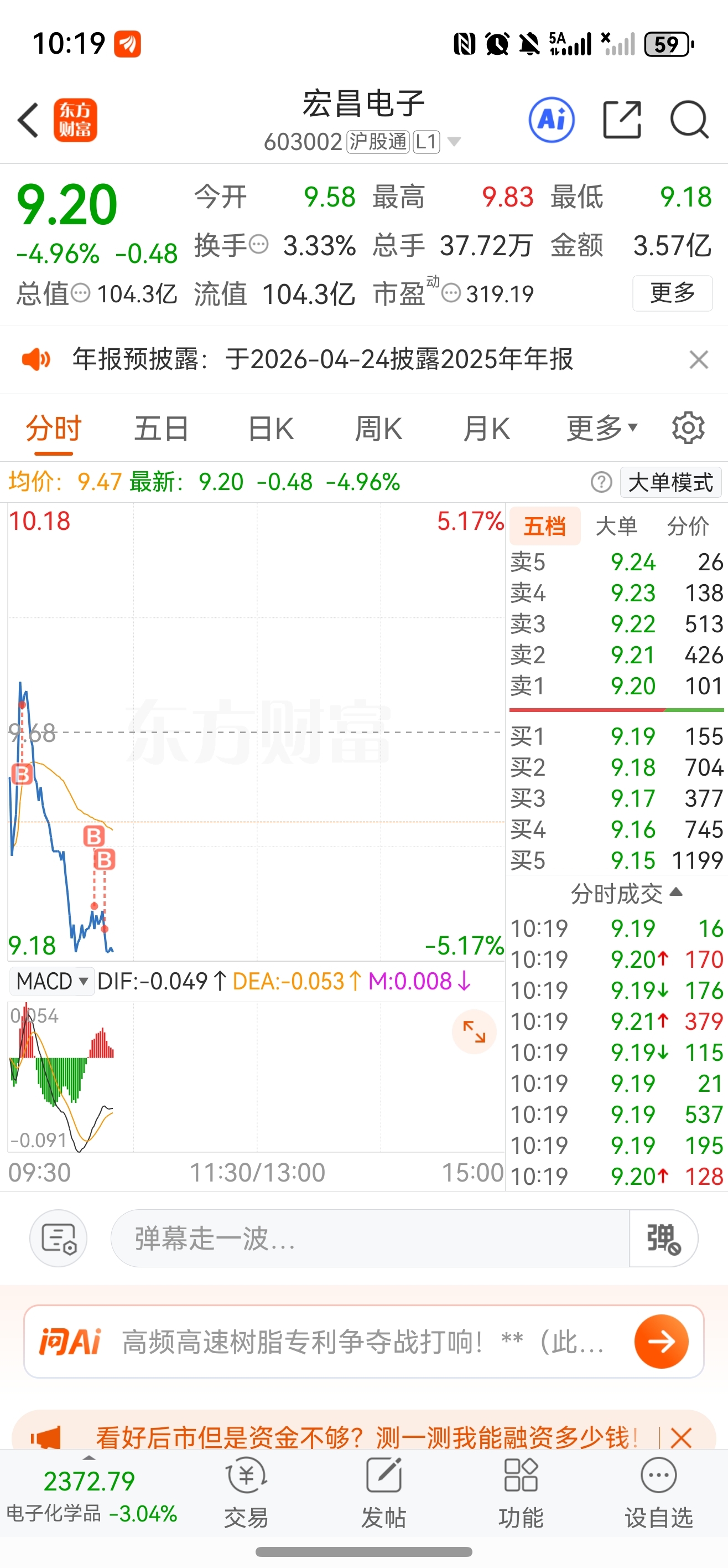 $宏昌电子(SH603002)$ 一会儿稳了再加