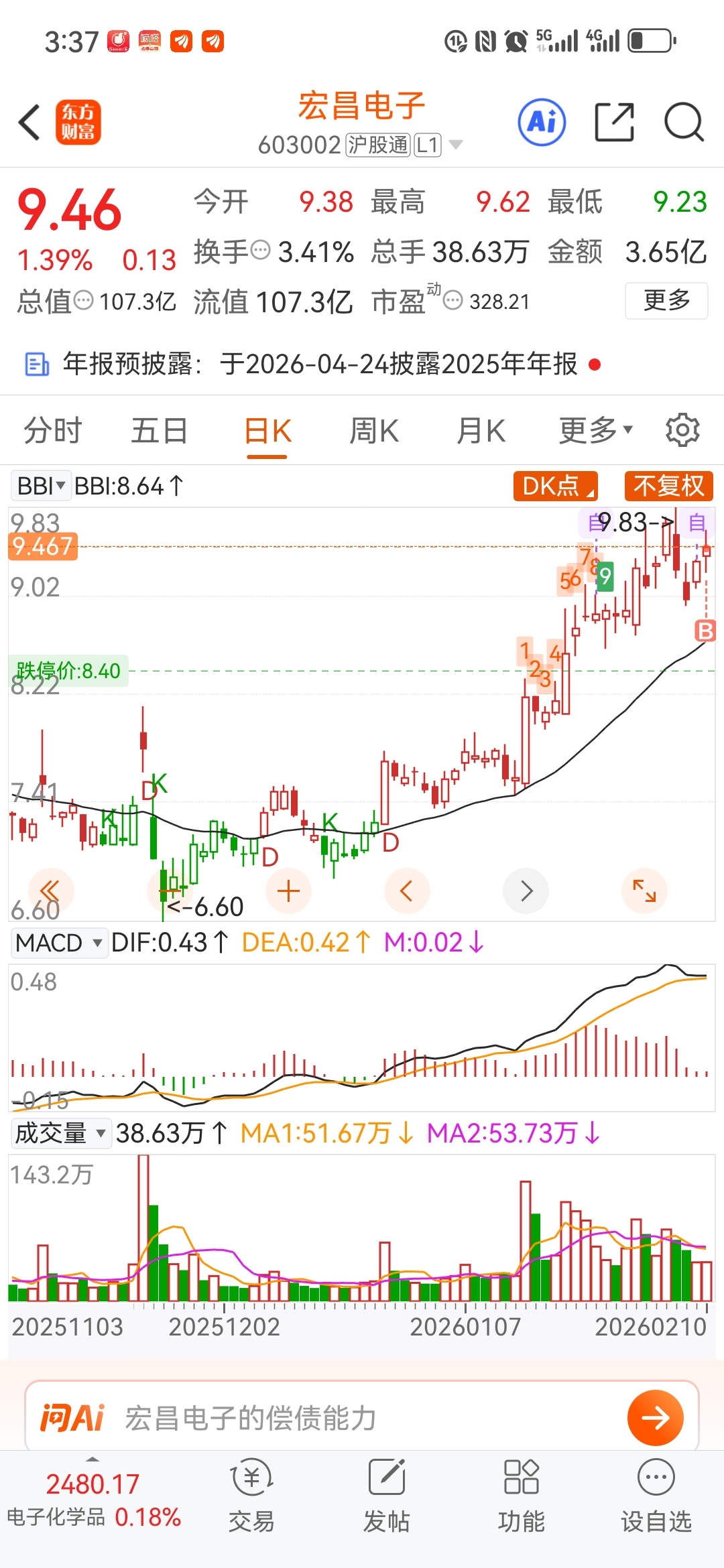 $宏昌电子(SH603002)$ 我来接你们的盘