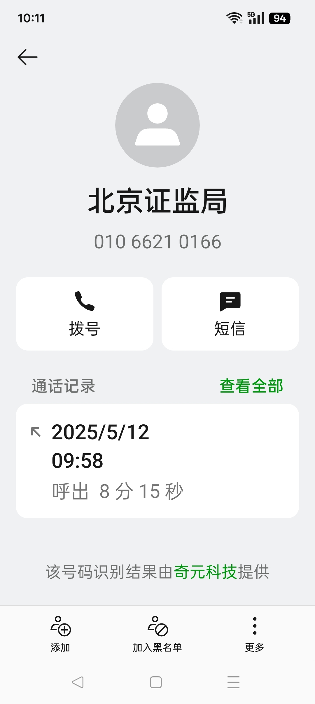 刚打了01066210166,01066210182,证监局电话,是监管部门,大