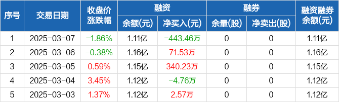 鼎龙科技:融资净偿还443.46万元,融资余额1.11亿元(03-07)
