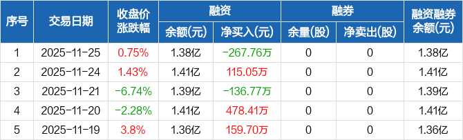 鼎龙科技:融资净偿还267.76万元,融资余额1.38亿元(11-25)