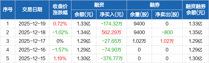 鼎龙科技:融资净偿还174.32万元,融资余额1.33亿元(12-19)