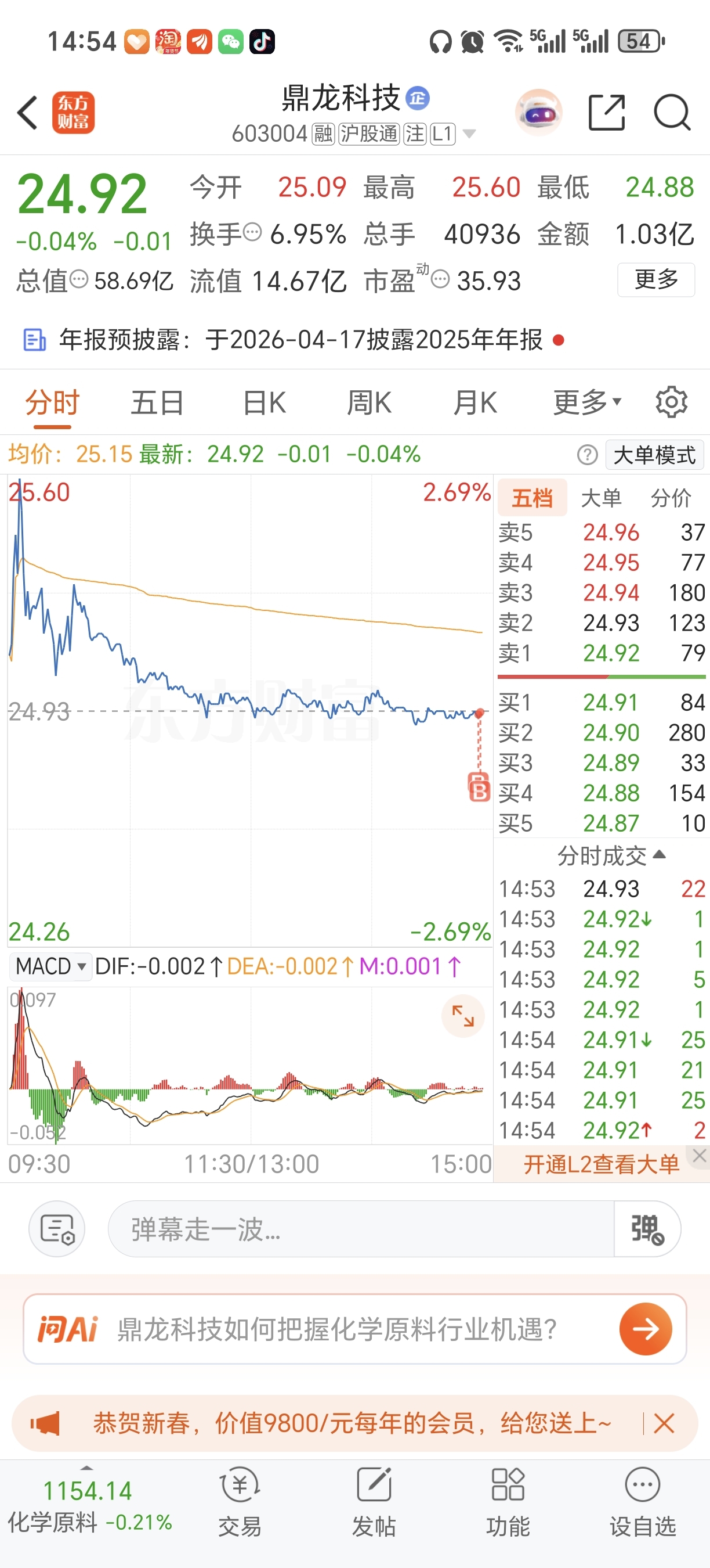 $鼎龙科技(SH603004)$