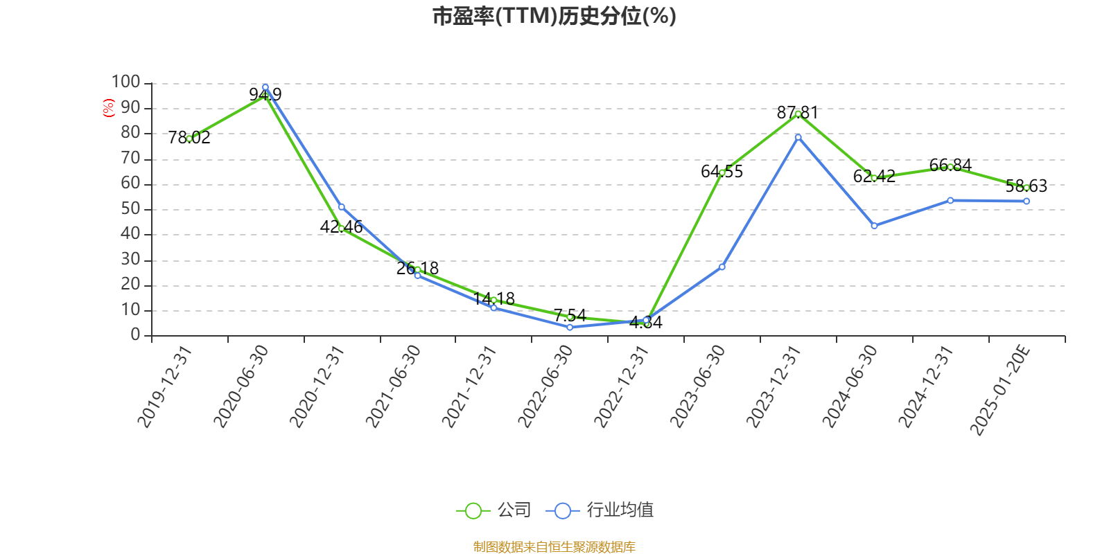 以本次披露业绩预告均值计算,公司近年市盈率(TTM)图如下所示: