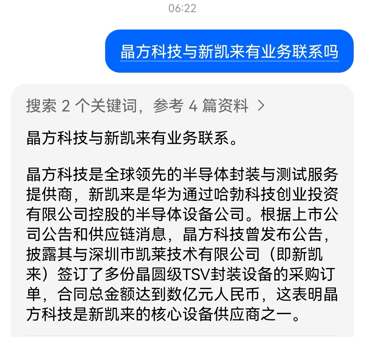 $晶方科技(SH603005)$ 晶方科技与新凯来有业务联系