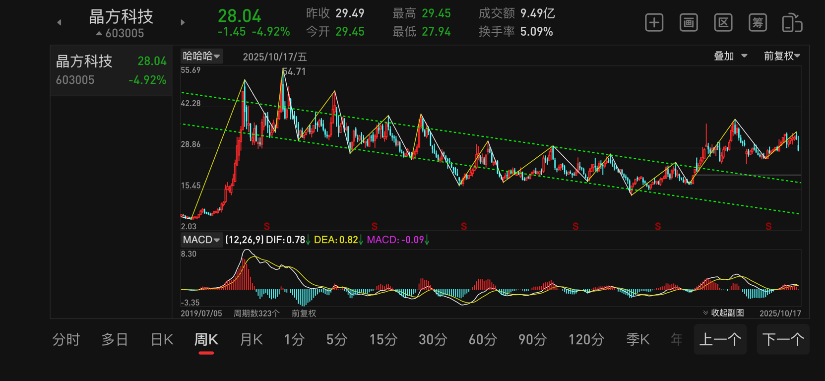 看周线这五年下跌趋势的运行就知道这股的主力资金多么恶心人了,现在周线的上涨趋势也