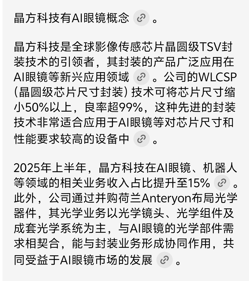 $晶方科技(SH603005)$ 晶方科技有AⅠ眼镜概念。