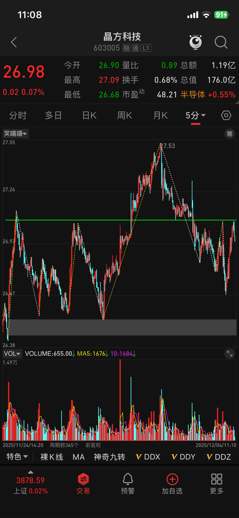 再次回抽绿线27.08,又骗一次,短短一上午骗两次,对这股的资金第一次感到如此的