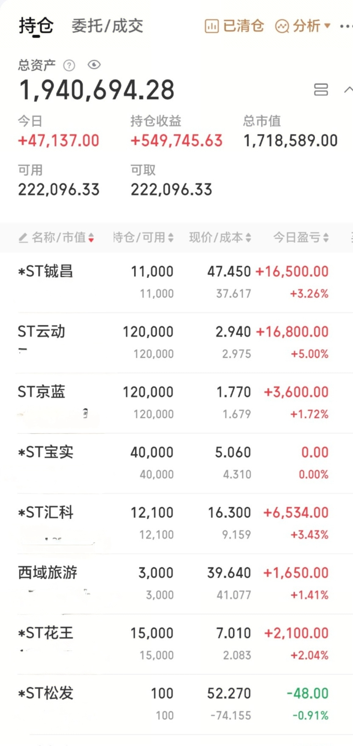 有图有真相!牛哥账户多,东财两个账户没动,中投账户也没动,小账户操作会相对频繁一点,也只是高抛低吸,尽可能摊低成本!