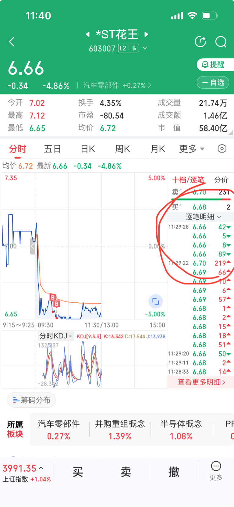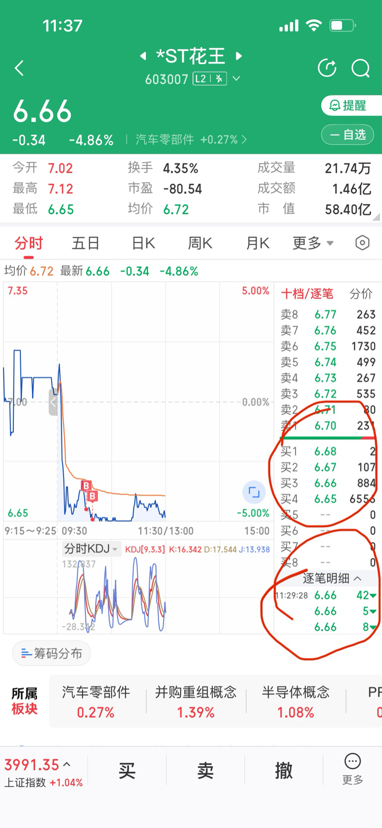 $*ST花王(SH603007)$ 乍一看,我还以为手机数据在缓冲,细看才发现有一帮人故意挂低几个价位卖出。故意压价对谁有好处?