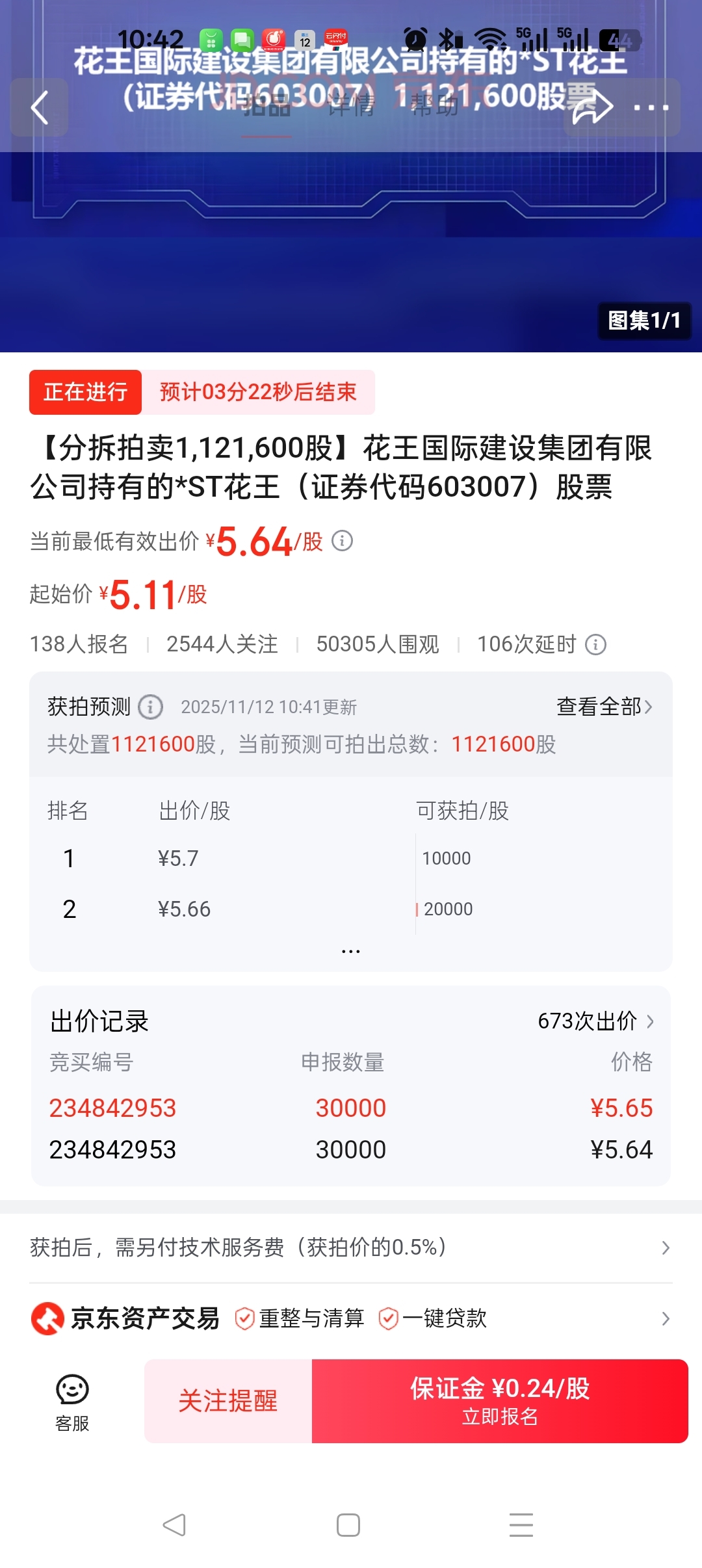 $*ST花王(SH603007)$ 股东只有1.8万人,为啥拍卖这点股票能有5万多人围观