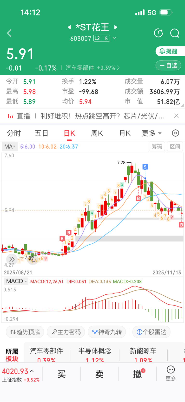 $*ST花王(SH603007)$ 马上5.9,建仓建仓。