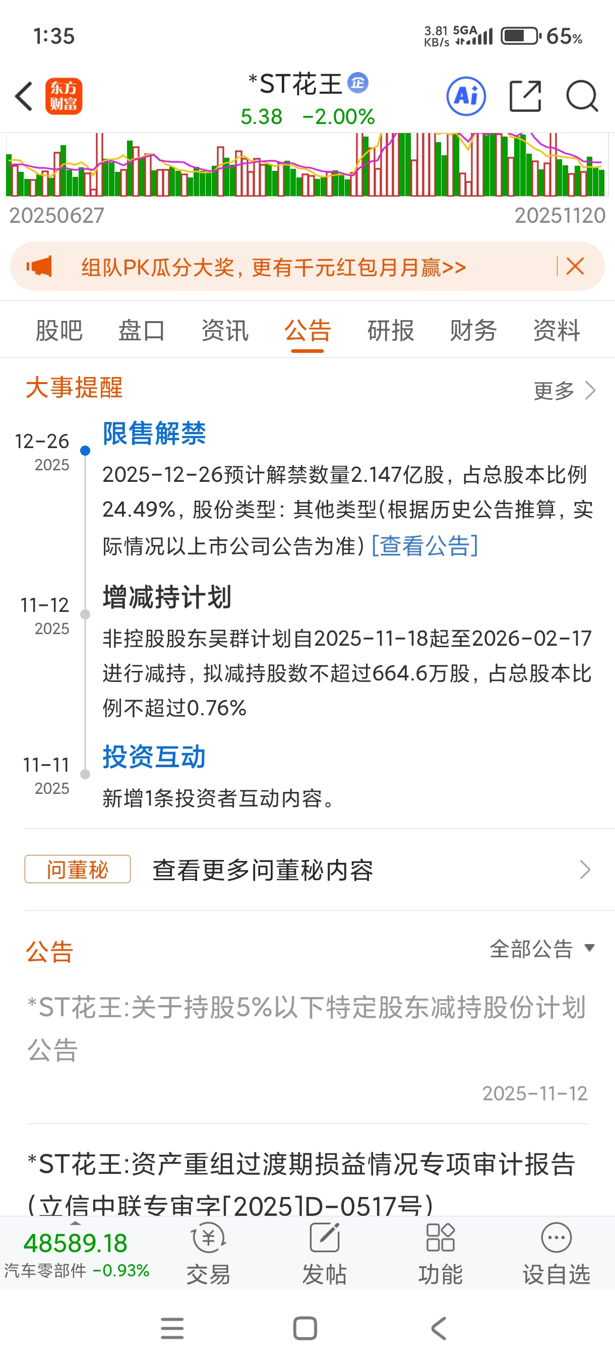 $*ST花王(SH603007)$ 下个月的解禁……,还是得多观望