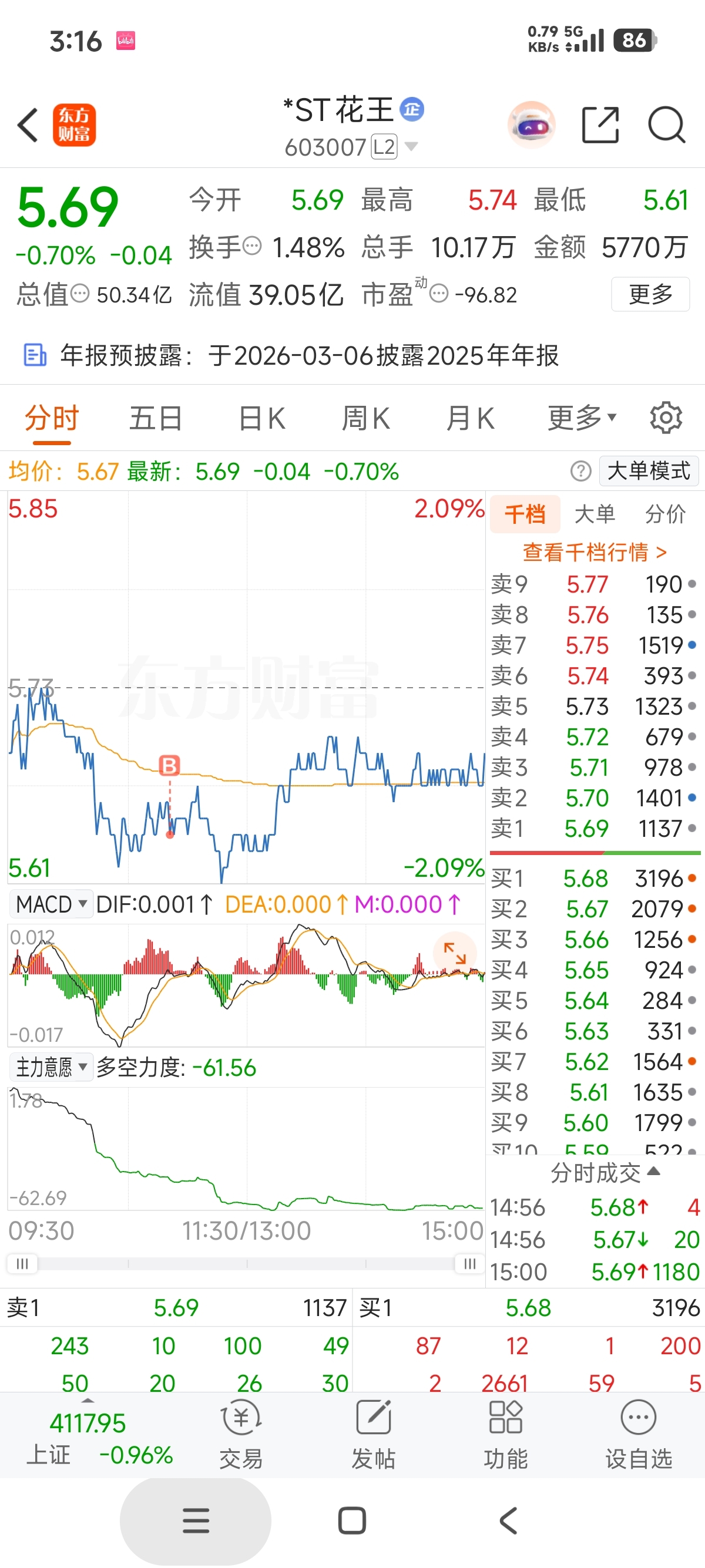 $*ST花王(SH603007)$ 今天果断加仓了,不知道是对是错