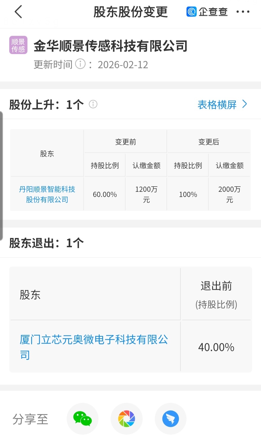 立芯元奥(博蓝特子公司)退出,金华顺景变为花王的全资子公司。黄山顺景股权结构未发