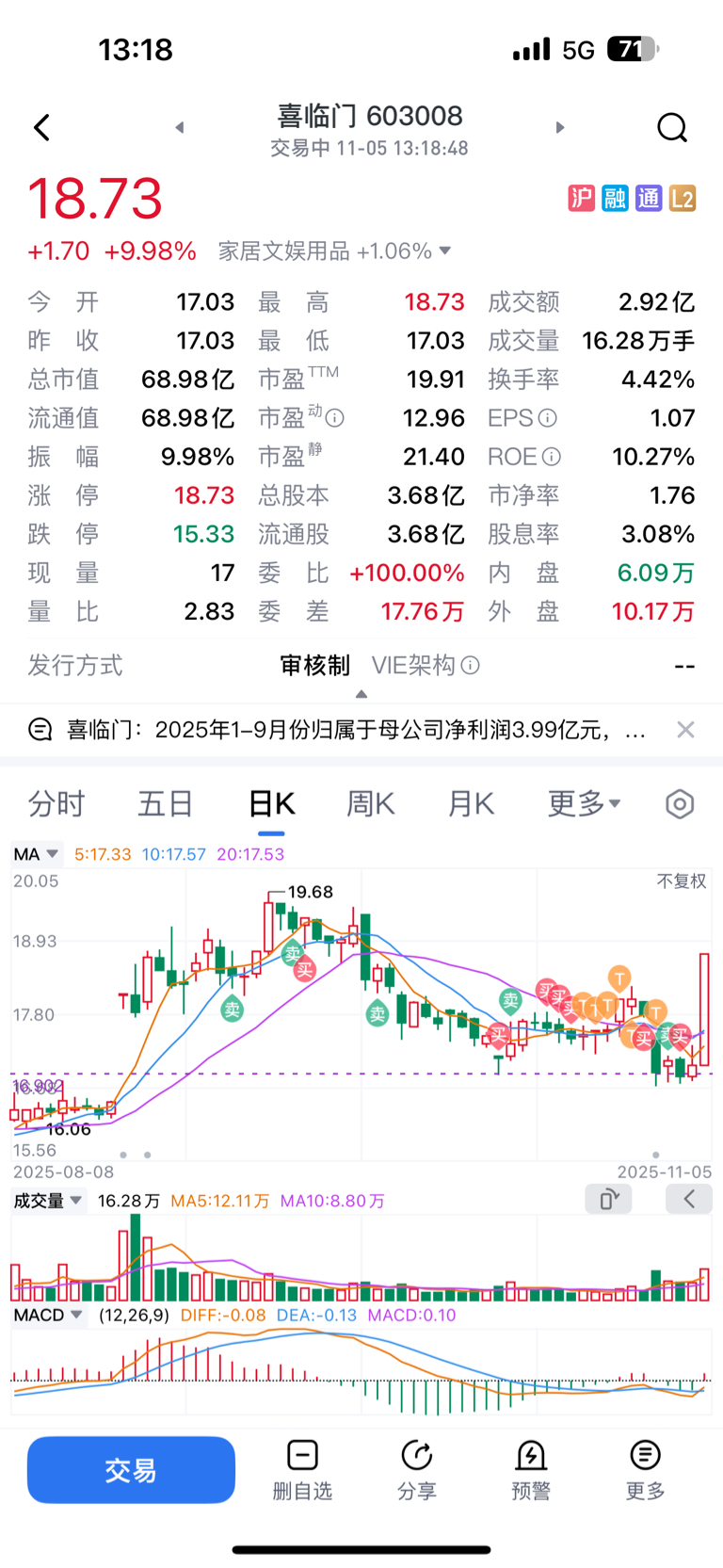 $喜临门(SH603008)$ 我还没打满啊,还没打满啊!