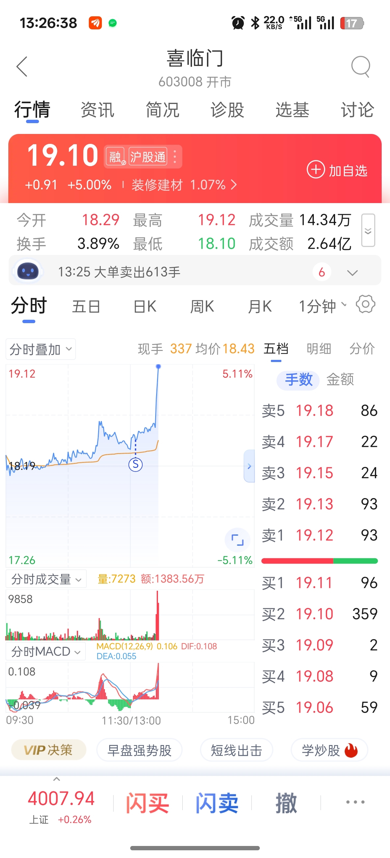 $喜临门(SH603008)$ 忍了一上午,还是卖飞了