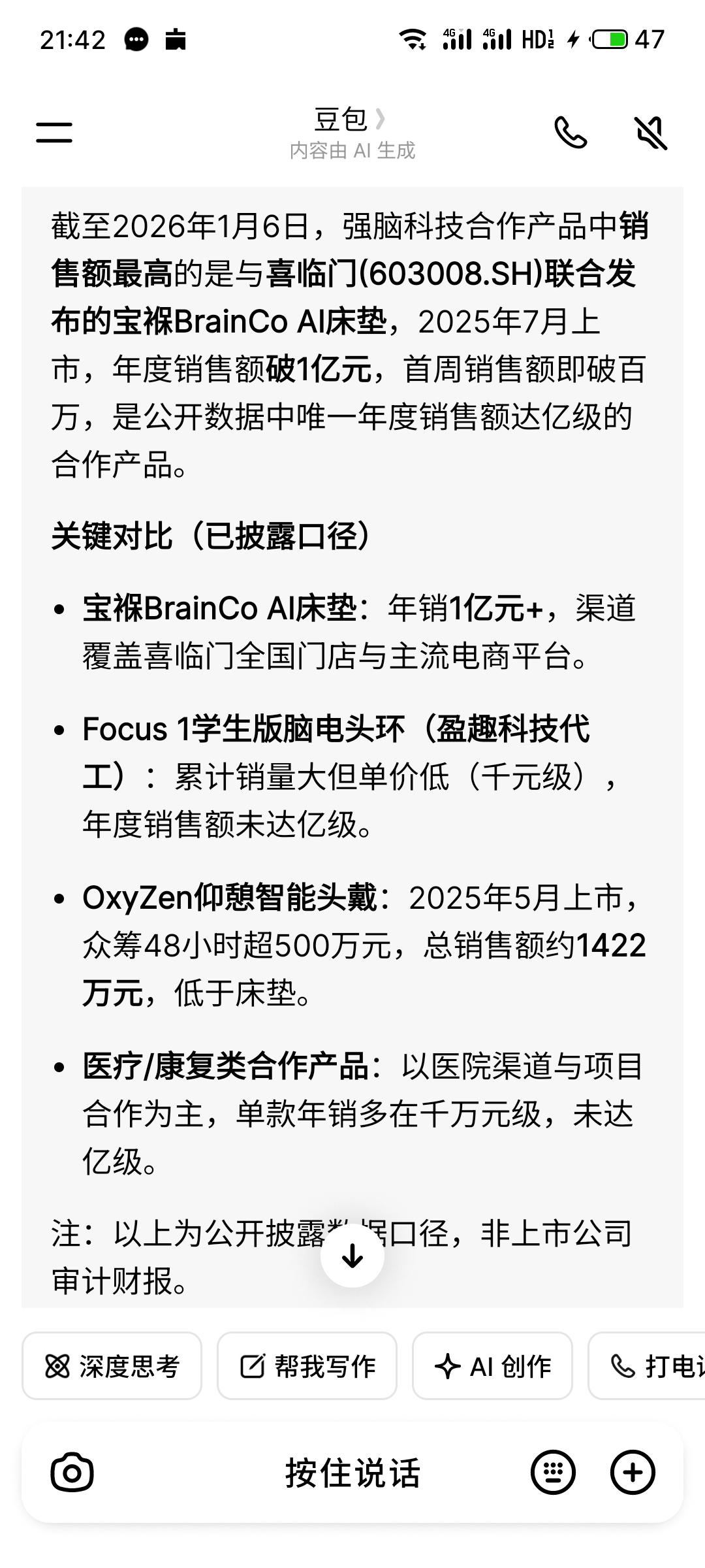 $喜临门(SH603008)$ 感觉明天应该不错,强脑科技今天20亿融资应该会上热点,作为强脑科技的独家脑机接口床垫合作公司,25年7月到现在年销量超一亿,这次炒作一波脑机接口销量肯定更好,没理由不大涨。