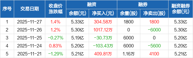 北特科技:融资净买入304.58万元,融资余额5.33亿元(11-27)