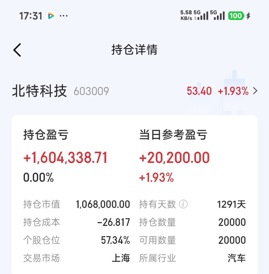 $北特科技(SH603009)$ 拿了四年,一时波动毫无压力。