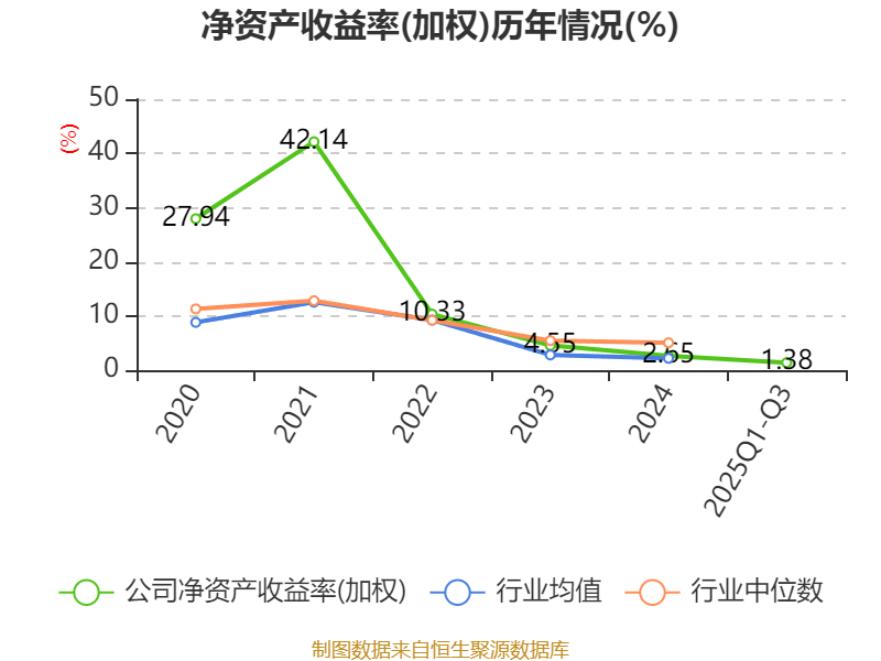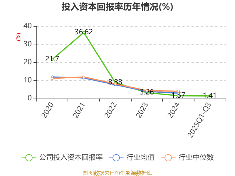 盈利能力方面, 2025年前三季度公司加权平均净资产收益率为1.38%,同比下降1.6个百分点。公司2025年前三季度投入资本回报率为1.41%,较上年同期下降0.69个百分点。