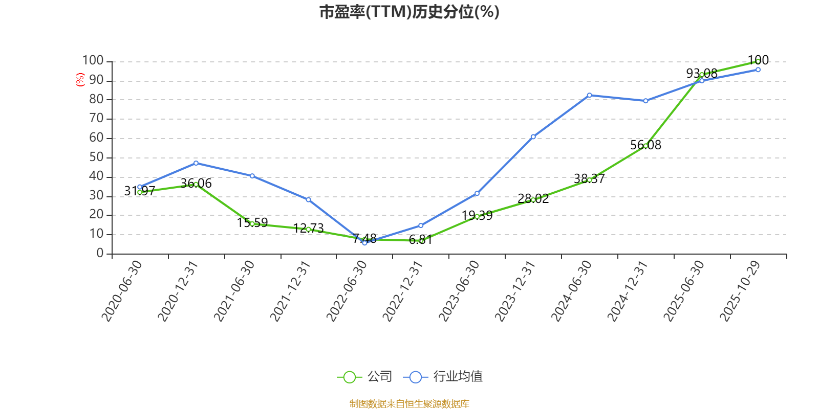 市盈率、市净率为负时,不显示当期分位数,会导致折线图中断。