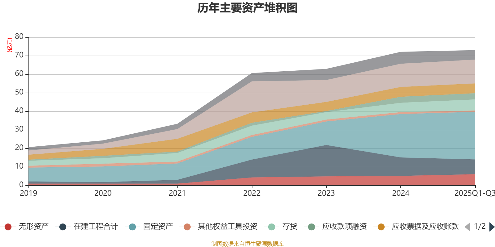 资产重大变化方面,截至2025年三季度末,公司在建工程合计较上年末减少20.39%,占公司总资产比重下降2.96个百分点;固定资产较上年末增加9.76%,占公司总资产比重上升2.72个百分点;无形资产较上年末增加18.84%,占公司总资产比重上升1.21个百分点;存货较上年末增加18.53%,占公司总资产比重上升1.19个百分点。
