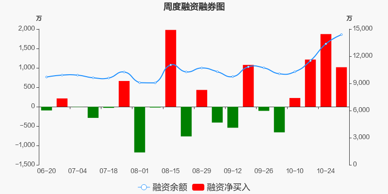 万盛股份本周(2025/10/27-2025/10/31)累计涨幅达4.42%,截至10月31日最新股价报收11.33元。从增量上来看,10月27日至10月31日融资买入交易规模1.03亿元,融资偿还规模9276.65万元,期内融资净买入1017.38万元。从存量上来看,截止11月2日,万盛股份融资融券余额1.44亿元,其中融资余额规模1.44亿元,融券余额规模9.86万元。