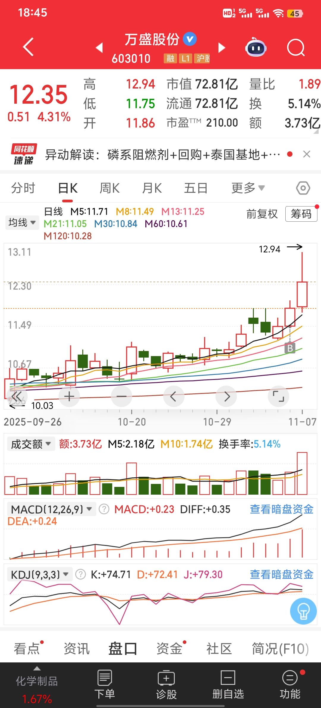 $万盛股份(SH603010)$ #炒股日记# 高点?你不抓住他,就当他没有高过~