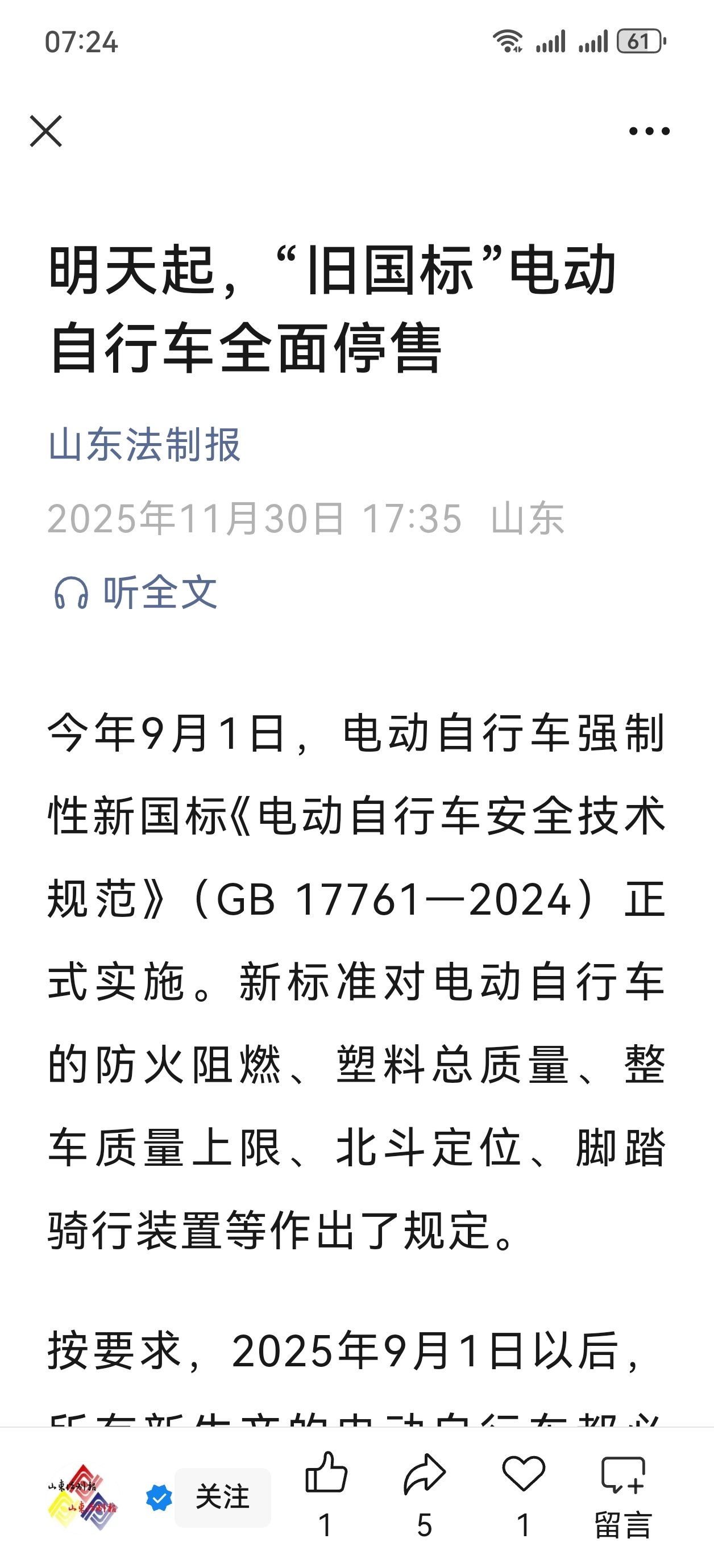 $万盛股份(SH603010)$ 。新标准对电动自行车的防火阻燃、塑料总质量、整车质量上限、北斗定位、脚踏骑行装置等作出了规定
