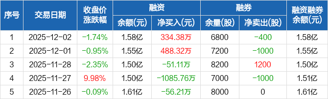 万盛股份:融资净买入334.38万元,融资余额1.58亿元(12-02)