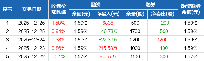 万盛股份:融资净买入6835元,融资余额1.59亿元(12-26)