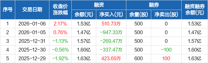 万盛股份:融资净买入510.73万元,融资余额1.53亿元(01-06)