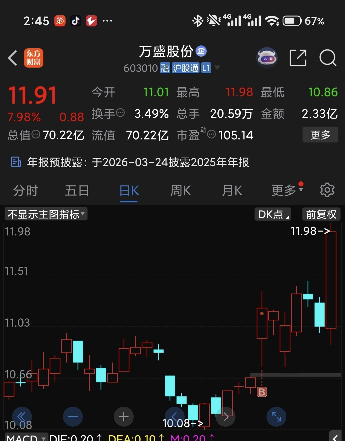 $万盛股份(SH603010)$ 等了一个星期终于等到涨停板