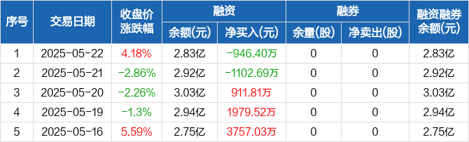 合锻智能:融资净偿还946.4万元,融资余额2.83亿元(05-22)