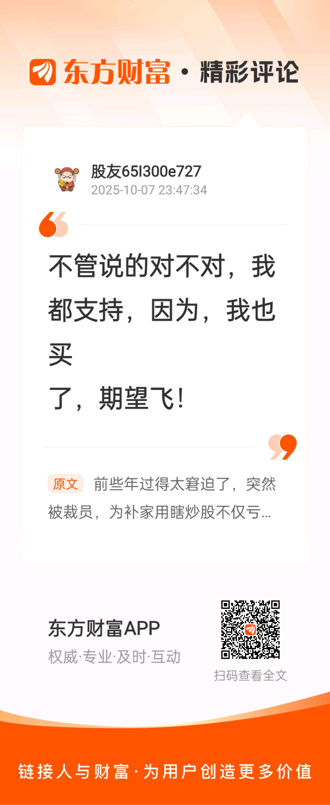 温馨提示: 1.根据《证券法》规定,禁止编造、传播虚假信息或者误导性信息,扰乱证券市场;2.用户在本社区发表的所有资料、言论等仅代表个人观点,与本网站立场无关,不对您构成任何投资建议。用户应基于自己的独立判断,自行决定证券投资并承担相应风险。《东方财富社区管理规定》
