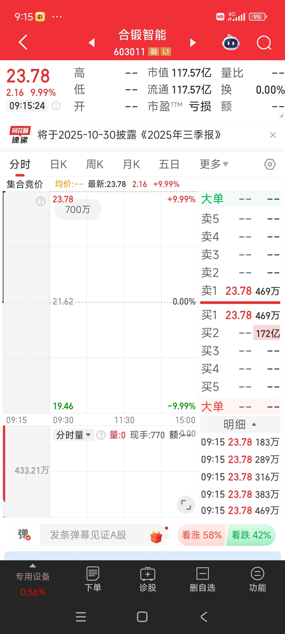 $合锻智能(SH603011)$ 这个竞价太吓人了170亿,加油主力下星期一继续板,这波看到50以上。今年回本就靠你了