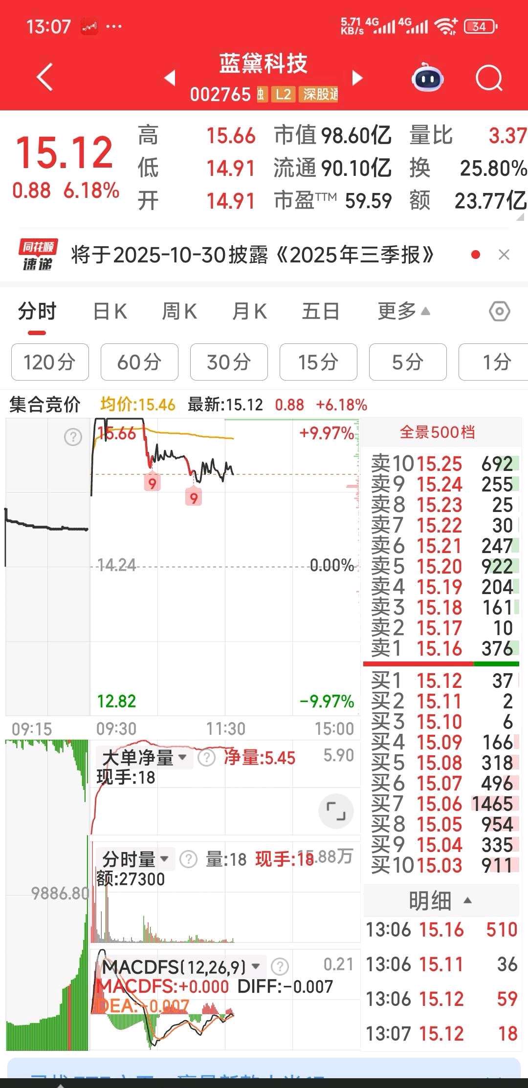 15.1元再加蓝黛科技,看下午怎么冲向涨停。