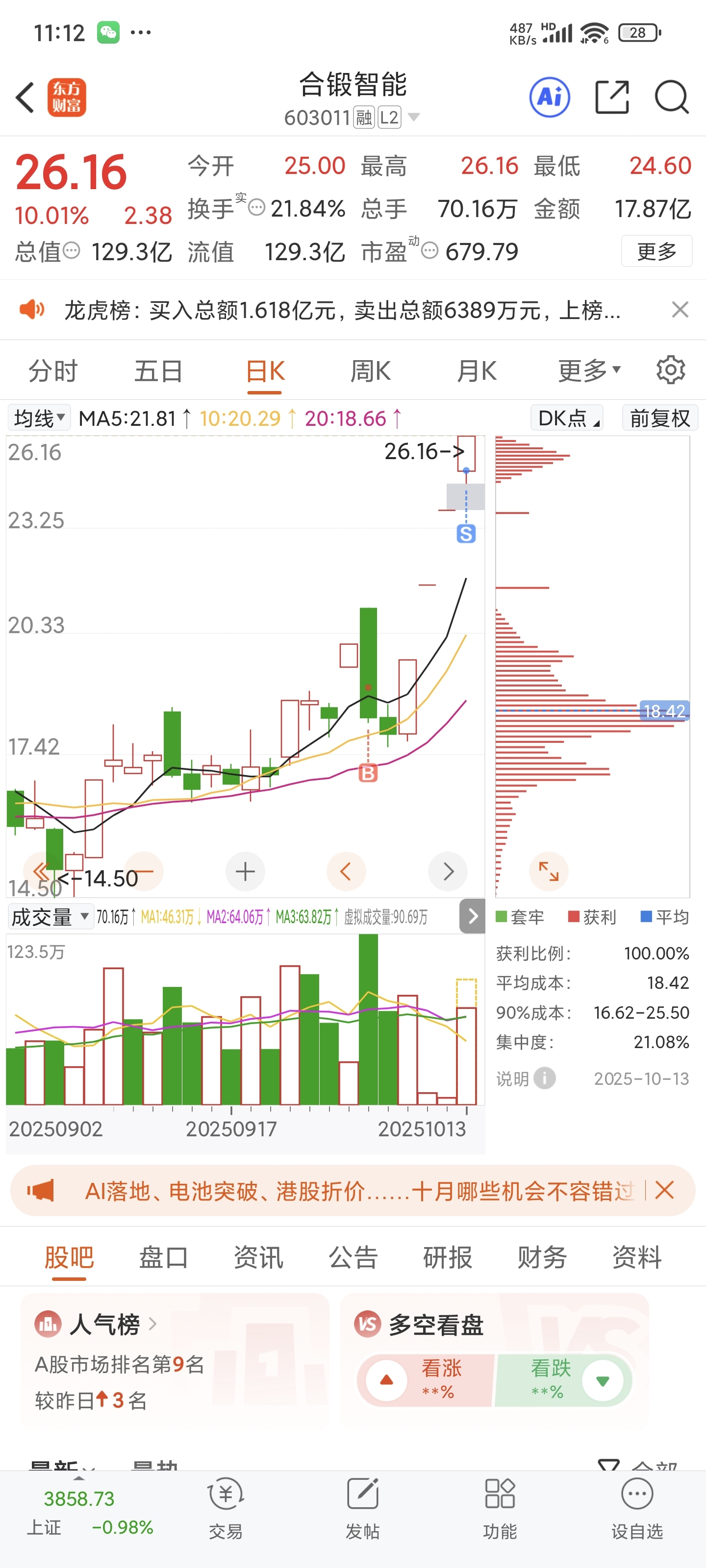 $合锻智能(SH603011)$ 明天溢价还是有的,该调一调了,在里面的兄弟们发财。