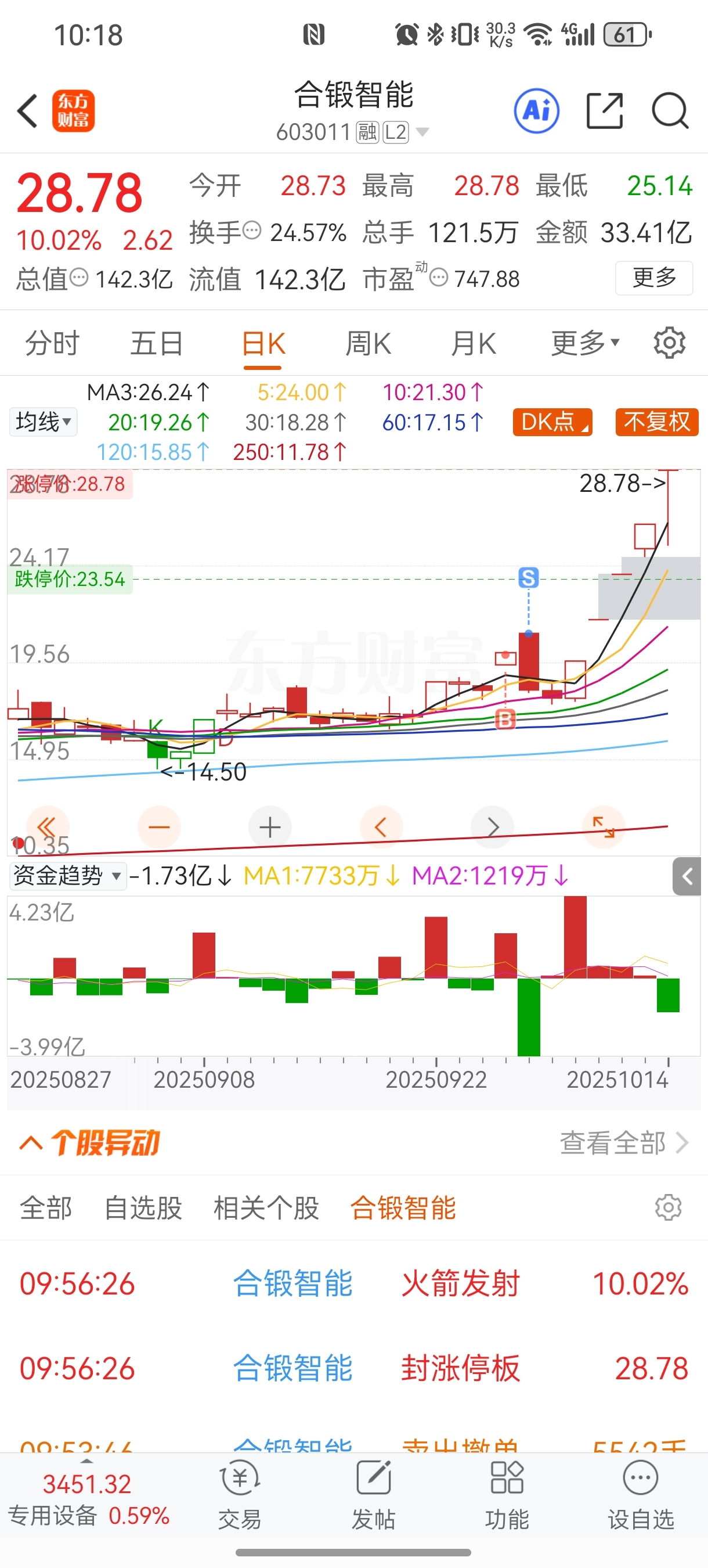 $合锻智能(SH603011)$ 9.30买了其他股切换不了,错失5个板