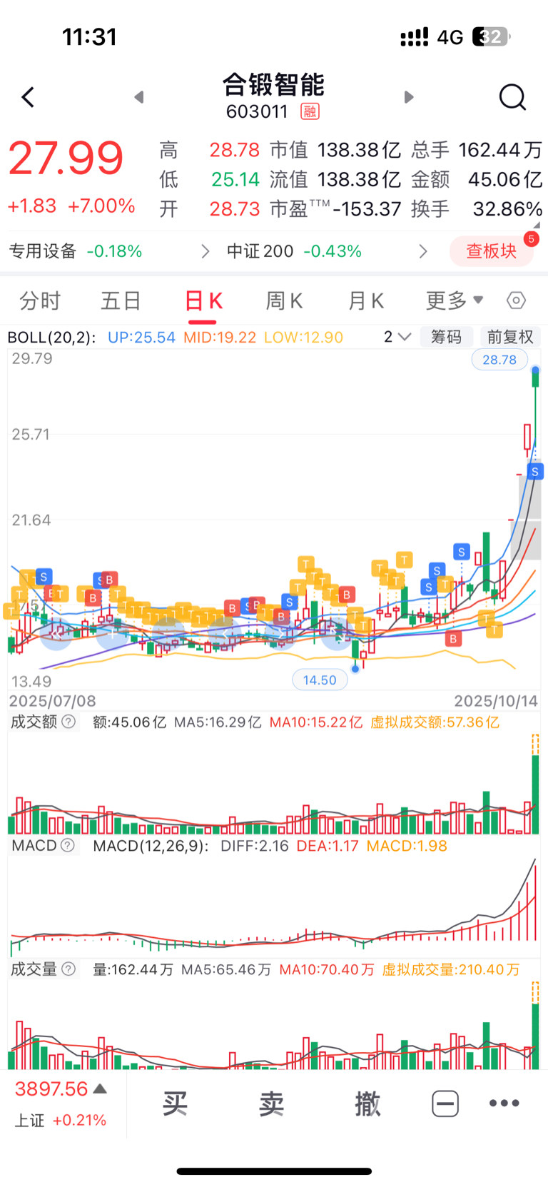 $合锻智能(SH603011)$ 感谢主力,四个月的持仓