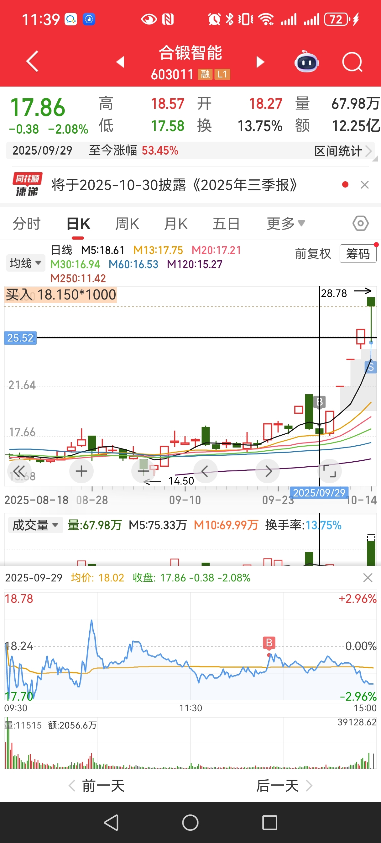 $合锻智能(SH603011)$ 再见了 ,最低点买,最高点卖,我的买卖点。