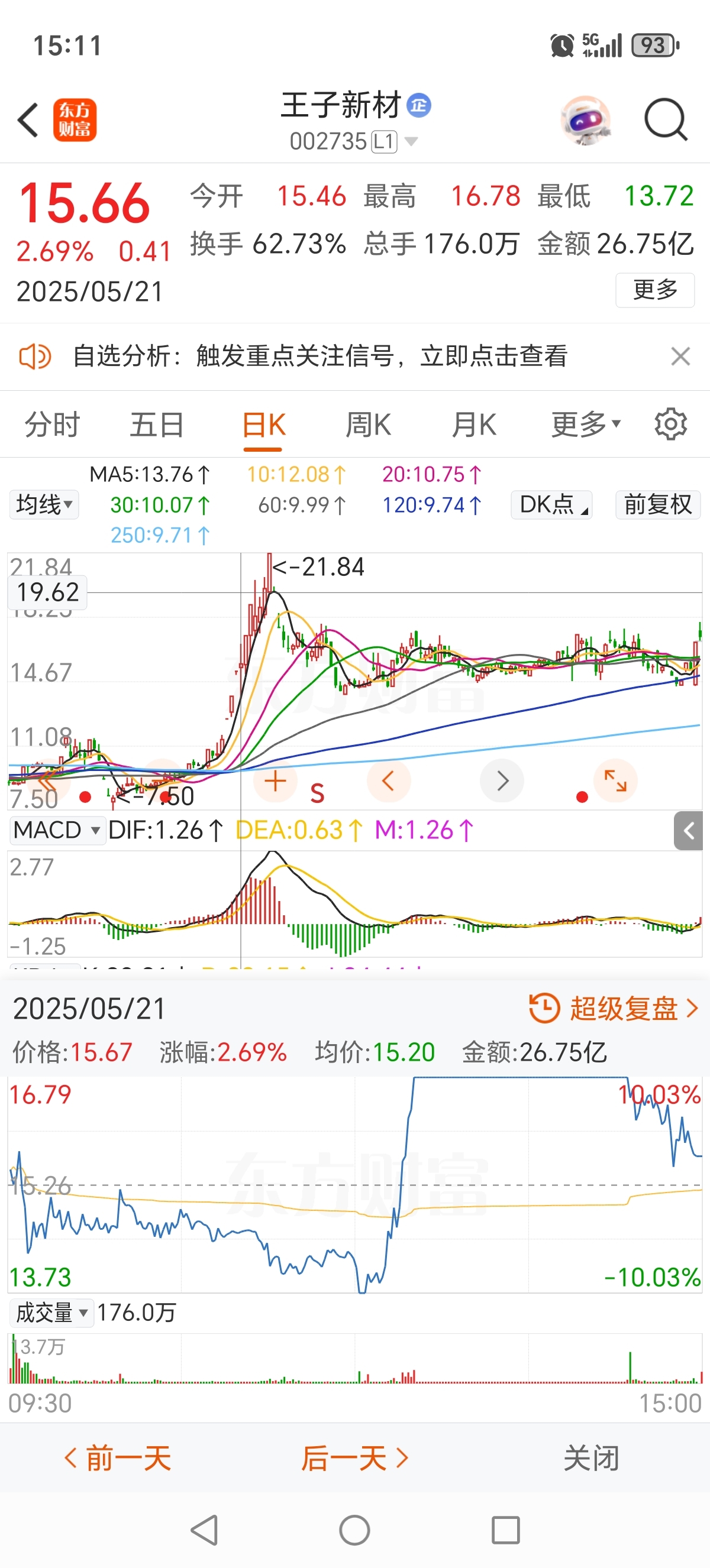 $合锻智能(SH603011)$ 看看王子新材连续多少天实际换手率过60还一直涨的